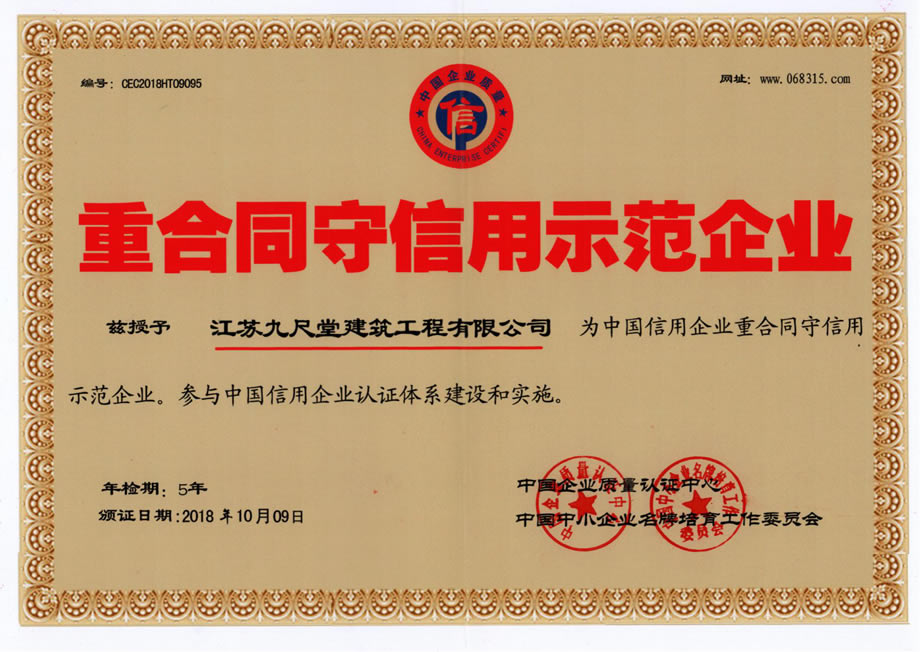 重合同守信用示范企業
